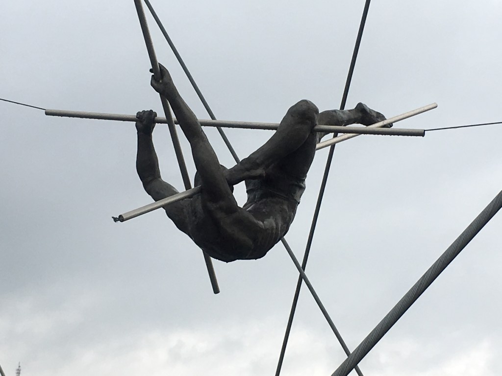 Bronze gymnast in the Inverted Cross position, Father Bernatek Footbridge, Kraków
