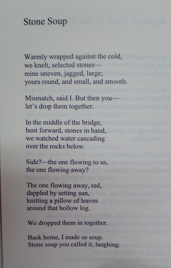 I used the book’s January 6 prompt to write a poem titled, no surprise here, “Stone Soup.” The Magnolia Review, an online journal, published the poem in The Magnolia Review Volume 4, Issue 2 July 2018. Below is a picture of the poem as it appeared subsequently in God’s Memory, published by Kelsay Books in 2021. By reviewing the prompt and its image below together, it’s easy to see the effect of the former on the latter.