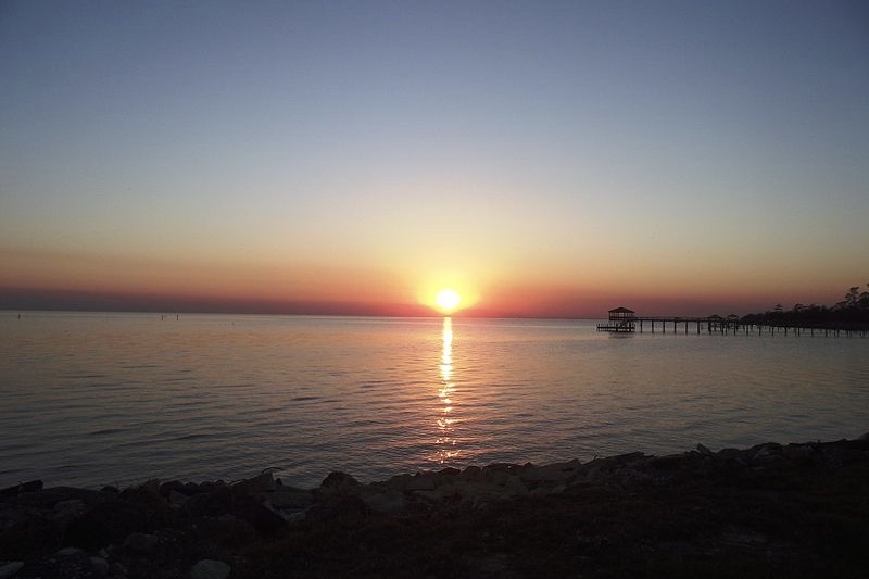 Sunset over Lake Pontchatrain from the southbound causeway entrance (cropped).
